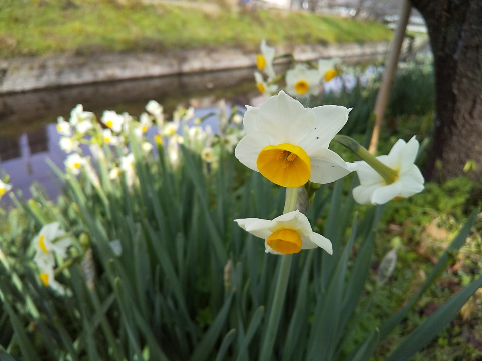 真ん中の部分が白いスイセンを見つけました。