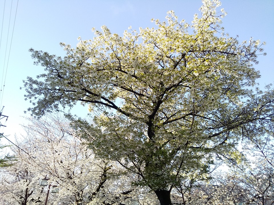 花と同時に緑の葉が出るところからするとオオシマザクラかも知れません。